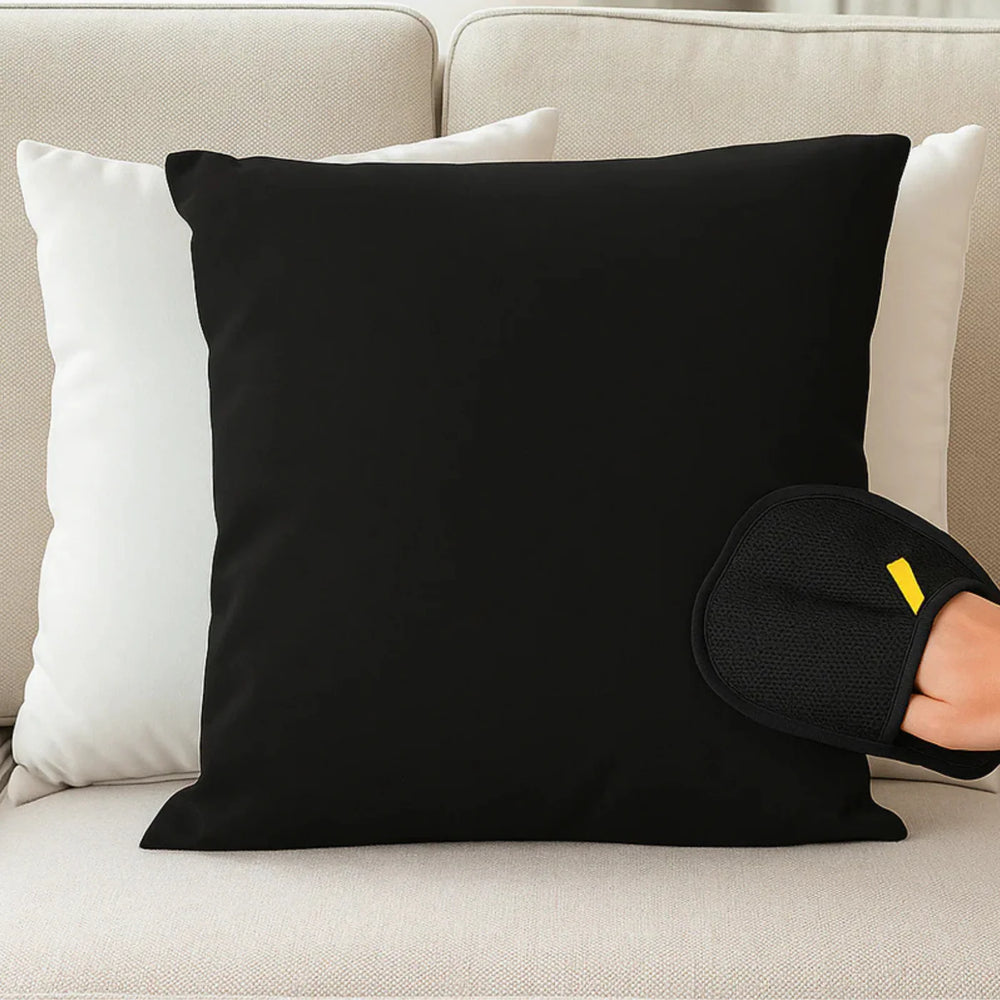 Avant je passais 15 minutes avec un rouleau pour un résultat bof. Avec ce gant, en 2 minutes tout est propre. Canapé, manteaux, coussins… il fait tout.